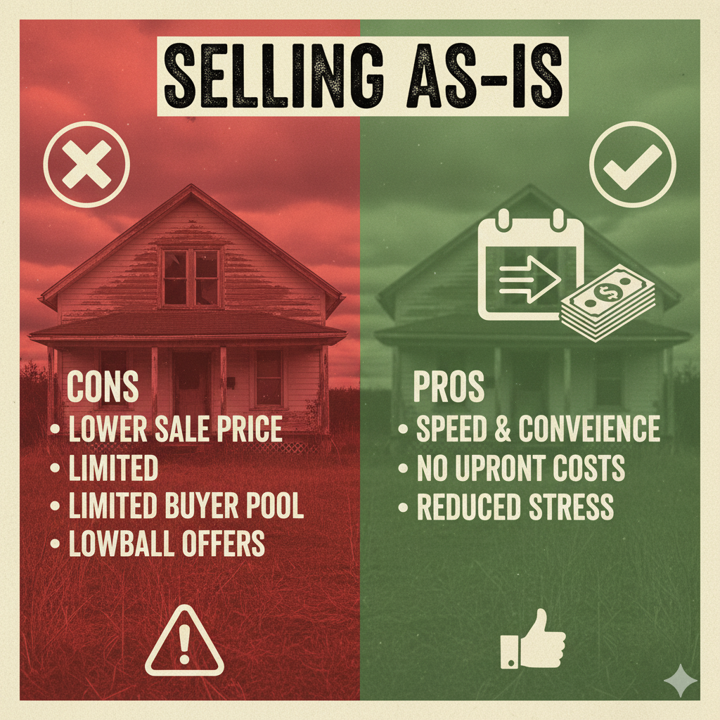 - A Lower Sale Price: A home sold as-is will almost always fetch a lower price than well-maintained property. Buyers will factor in the cost of all necessary repairs and then subtract even more to account for the risk and effort they will have to put in.