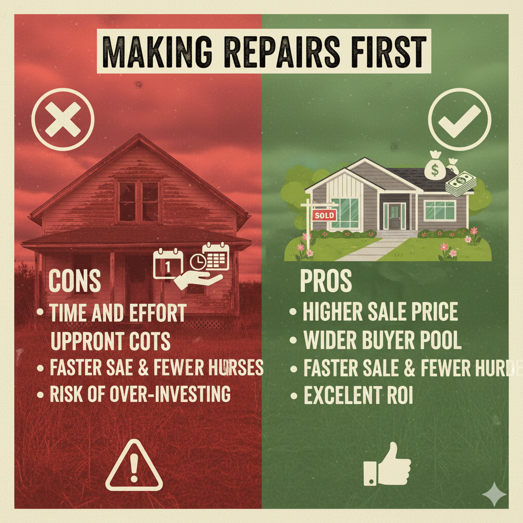 The best approach is to consult with a local real estate agent. They can walk through your home, provide an honest assessment, and give you a detailed analysis of which repairs will offer the best return on investment for your specific market.